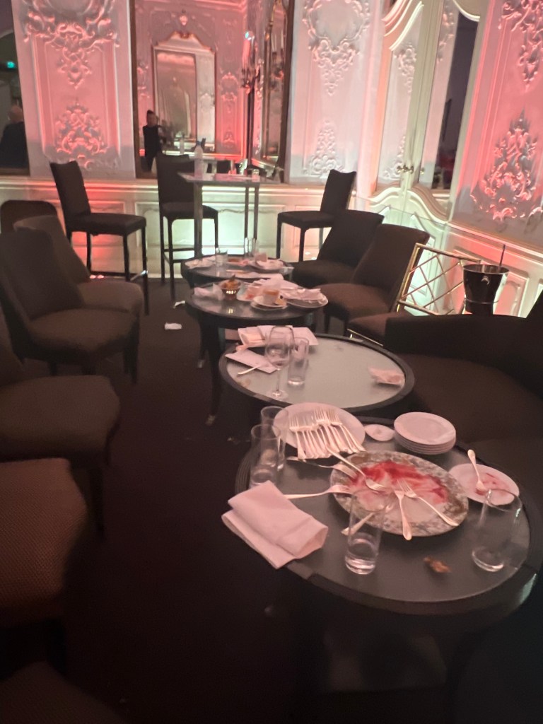 Schock: es standen überall leere Gläser, angebissene Bürger, und eine verschmierte Theke.
